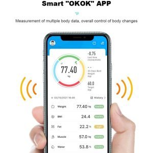 ওজন স্কেলটি ব্লুটুথ এর মাধ্যমে OKOK অ্যাপস এর সাথে সংযোগ হয়।
